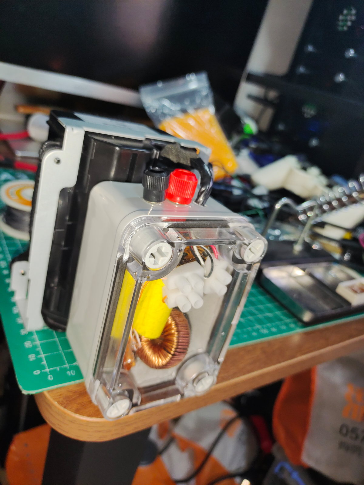 家里电脑用的旧音箱年久失修,发现喇叭振膜全破了,然后突然就心血来潮上网掏来这两音箱(主要还是它便宜), 卖家在输入端串了一个电容做高低音分频器,